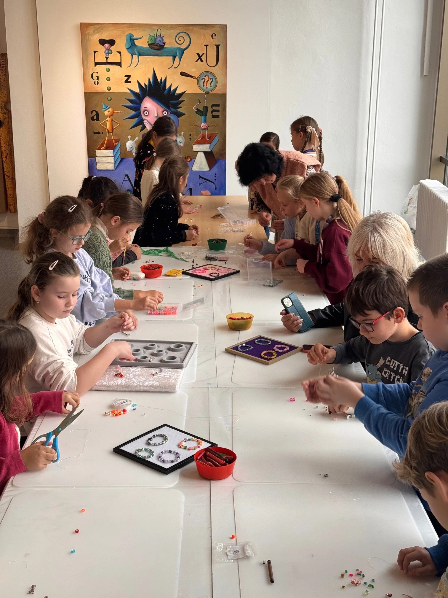 Deti boli úžasné! Vrhli sa do tvorby s plným nasadením a záujmom. Vytvorili úžasné náramky plné fantázie a hravosti. A nebyť toho, že mali ďalší školský program, tak tam možno korálkujeme doteraz.